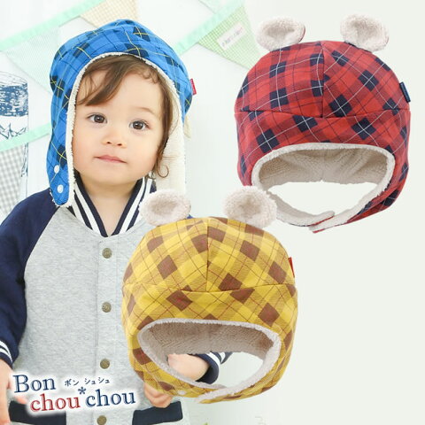 ベビー 帽子 男の子 女の子 秋冬 ベビー服 赤ちゃん キッズ 子供 くま クマ 着ぐるみ 出産祝い ギフト プレゼント くま耳付き チェック ベージュ ブラウン 茶色 46-48cm 48-50cm P9898 チャックルベビー ボンシュシュ