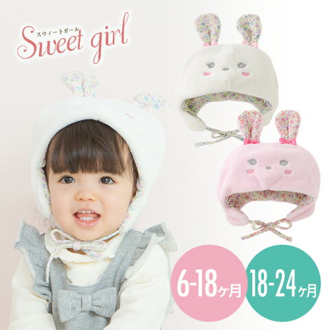 ベビー 帽子 女の子 秋冬 ベビー服 赤ちゃん キッズ 子供 うさぎ ウサギ 着ぐるみ 出産祝い ギフト プレゼント うさ耳付き 花柄 ピンク アイボリー 46-48cm 48-50cm P9248 チャックルベビー スウィートガール スイートガール